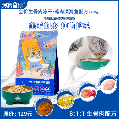 商品名称:珂赛星球全价生骨肉主食纯冻干猫粮鸡肉深海鱼配方鱼油美毛200g