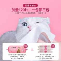 派锐 猫用除臭控油湿巾120P(泉水香)湿巾无酒精去污宠物湿纸巾加厚120片