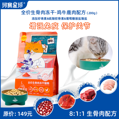 商品名称:珂赛星球全价生骨肉主食纯冻干猫粮鸡牛鹿肉配方200g虾青素强免疫