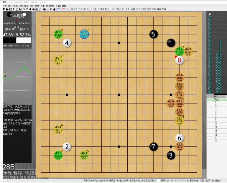 金毛流:星小目非常重要的分支,第 5 招在星位往外小飞,选点非常多,所需计算量非常大, AI 冠亚军对决就采用过,不过双方十招之内就不准了,所以我们把它从星小目里面独立出来。小目位的各种变化,高低挂、低挂后一间夹、一间高位夹、二间高低夹(大风车)、三间夹等复杂变化,很容易走错,必须要掌握。黑胜率不错。超大型分支