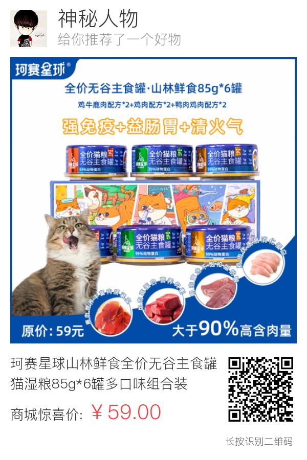 珂赛星球山林鲜食全价无谷主食罐猫湿粮85g*6罐多口味组合装