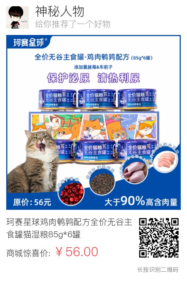 珂赛星球鸡肉鹌鹑配方全价无谷主食罐猫湿粮85g*6罐