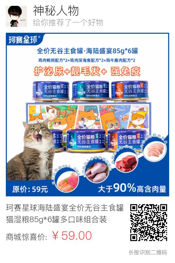 珂赛星球海陆盛宴全价无谷主食罐猫湿粮85g*6罐多口味组合装