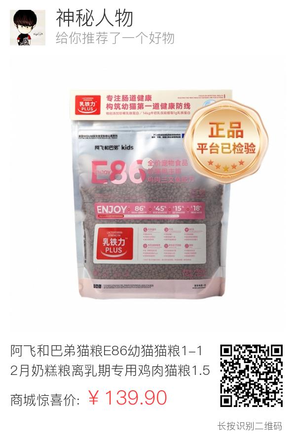 阿飞和巴弟猫粮E86幼猫猫粮1-12月奶糕粮离乳期专用鸡肉猫粮1.5kg