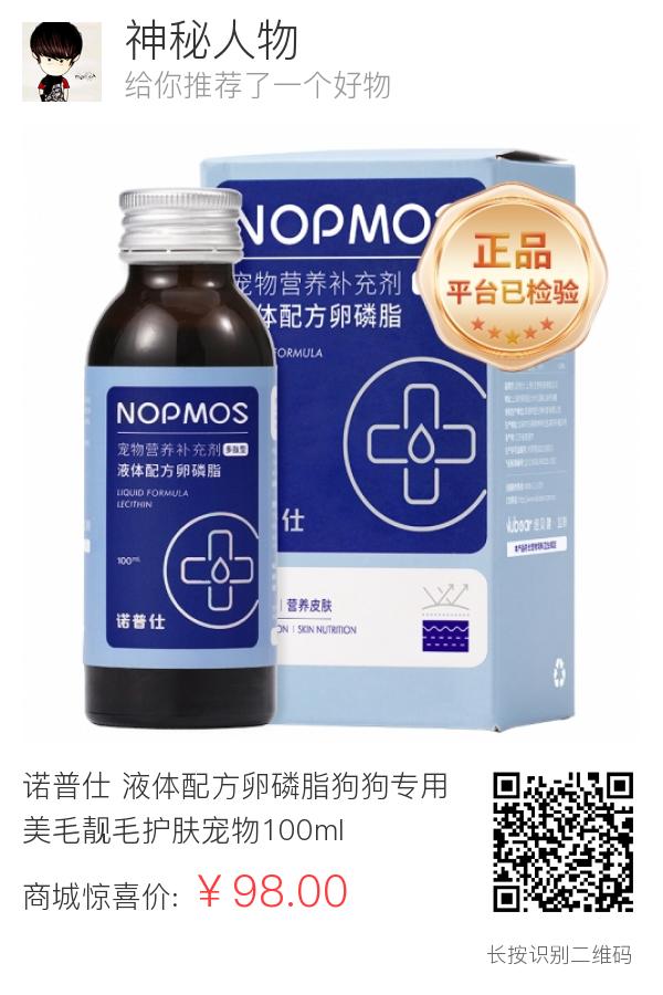 诺普仕 液体配方卵磷脂狗狗专用美毛靓毛护肤宠物100ml